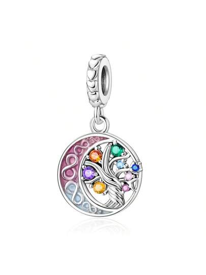 1pc Silver-Plated Moon & Tree Of Life Pendant, Suitable For Women Bracelet/Necklace DIY Jewelry Making And Daily Outfit Accessorizing - Silver - View 1
