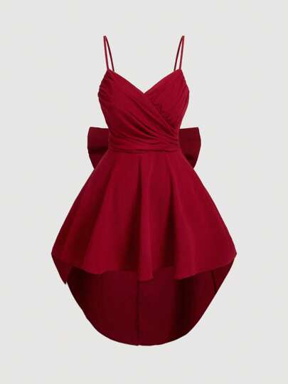 SHEIN MOD Plus Size Red Pleated Backless Plus Size Bow High Low Dress, Elegant Women Dress, Party Dress, Bow Dress, Red Dress, Red Formal Dress, Holiday Dress, Red Dress, Sexy Red Dress Woman Dress Women Dress Women Elegant Dresses Women Dresses Elegant Gown Women Dresses Vacation Cute Dresses For Women Party Dresses For Women Women Formal Party Outfits For Women Birthday Dresses For Women Women Short Dresses Semi Formal Dresses For Women - Red - View 1