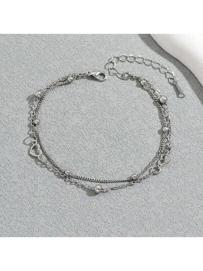 1pc Double-Layer Heart Shape Bracelet, Romantic & Feminine, Suitable Gift For Women, Students, Friends, Birthday/Anniversary - Silver - View 1