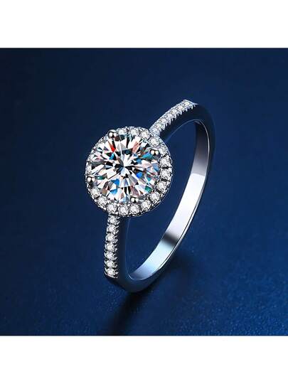 1pc S925 Sterling Silver Moissanite Ring, Round Halo Design For Women, Luxurious Elegant Proposal/Wedding Ring - 1 Carat Moissanite Ring - View 1