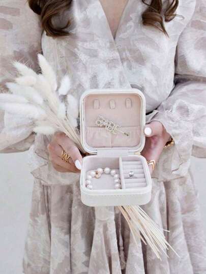 1pc Mini Jewelry Box, Portable Travel Jewelry Organizer, Multifunctional Jewelry Display Storage Case For Necklace, Earrings, Rings, Lipstick, Elegant Design Suitable For Home & Bedroom - Multicolor - View 1