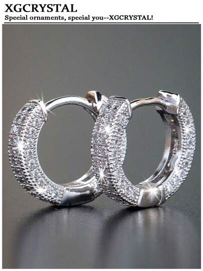 1 Pair Elegant Full Crystal Minimalist Versatile Hoop Earrings, Fashion Suitable For Men & Women, Suitable For Parties, Gatherings, Daily Wear, Performances - View 1