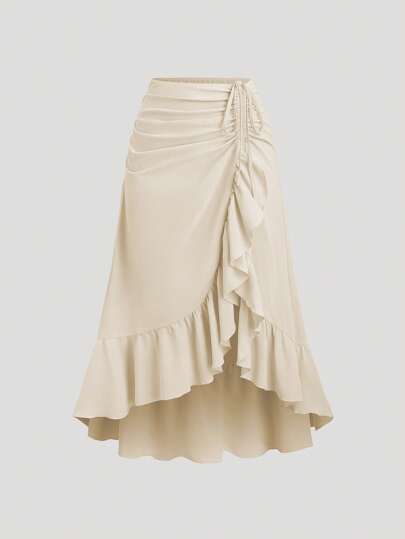 Sweetra Women's New Valentine's Day Wine Red Spring/Summer Palace Retro High-Low Hem Skirt, Drawstring Ruffle Layered Skirt, Party Skirt, Bohemian Style Skirt Fall Cloth For Women - Apricot - View 1