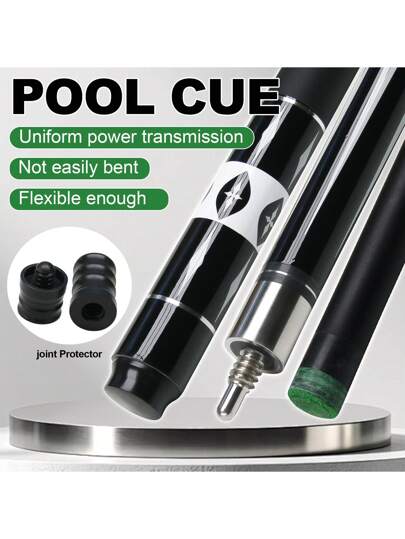 Professional 1/2 Jointed Glass Fiber Pool Cue, 146cm Long With Black Shaft And White Diamond Pattern, 12.5mm High-Quality Leather Tip, Multi-Layer Leather Designed For Strong Grip, Suitable For Players Of All Levels - Black - View 1