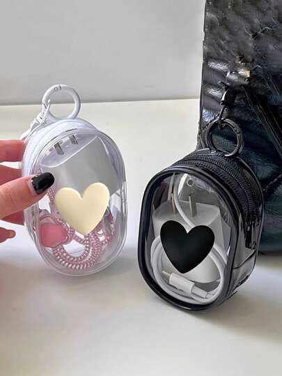 Transparent PVC Waterproof Heart-Shaped Cable Organizer - Electronic Accessories Storage Pouch With Keychain For Women Wallet Mini Wallet Purse Wallet Coin Wallet Wallet - Multicolor - View 1