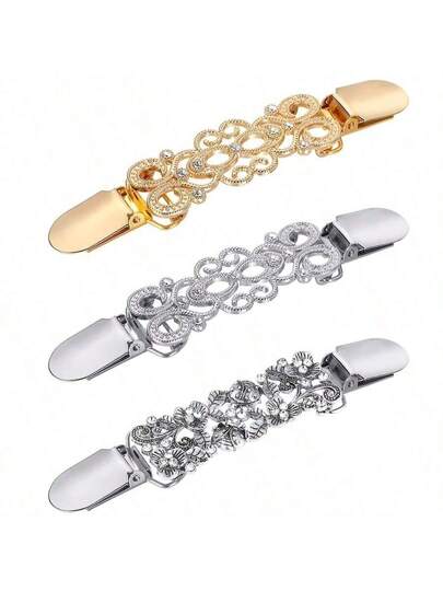 Set Of 3 Vintage Sweater Shawl Clips - Vintage Cardigan Tie Clips For Women And Girls - Perfect For Dress Shirt And Brooch Accessories Women Valentine's Day (Gold, Silver) - Multicolor - View 1