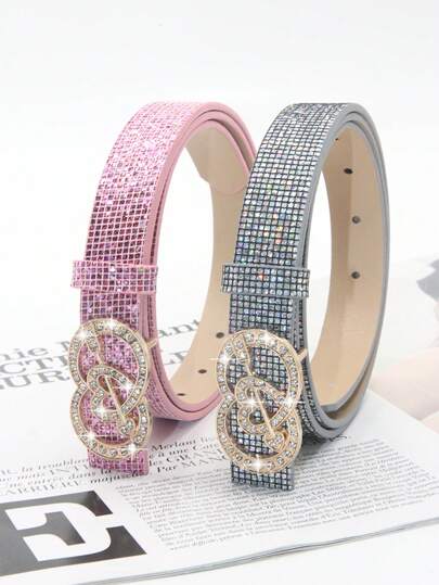 1pc Women's Rhinestone Heart Decor Shiny PU Leather Belt, Cute For Party Dress & Jeans - Multicolor - View 1