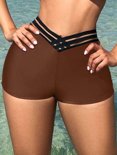 Swim Vcay Women's Contrast Color Waist Beach Bikini Bottom - Brown - View 1