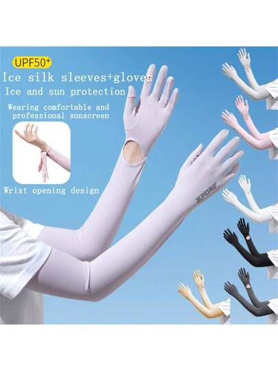 1 Pair Women's Extra Long Ice Silk Arm Sleeves, UV Protection Driving Bike Sleeve Gloves, Summer, Gift For Friend/Girlfriend/Mother - Multicolor - View 1