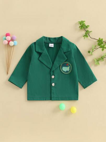 Toddler Boys  Girls Long Sleeve Lapel Jacket - Chic Spring Coat With Applique For Kids - Green - View 1
