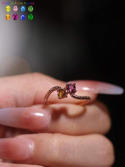 1pc 925 Sterling Silver Plated 18K Gemstone Ring, Random Color Emerald, Minimalist Luxury, Petite & Elegant Design, Suitable For Dinner Date, Party, Beach Vacation - Multicolor - View 9