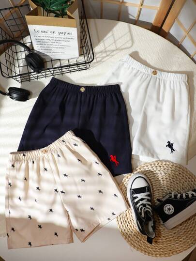 3pcs/Set Kids Boys Casual Khaki Shorts, Navy Embroidered Shorts, And White Shorts, Comfortable, Versatile, Suitable For Everyday Wear, Sports, Outdoor, School, Parties, Festivals, Photography, Back To School Season, Spring/Summer - Multicolor - View 1