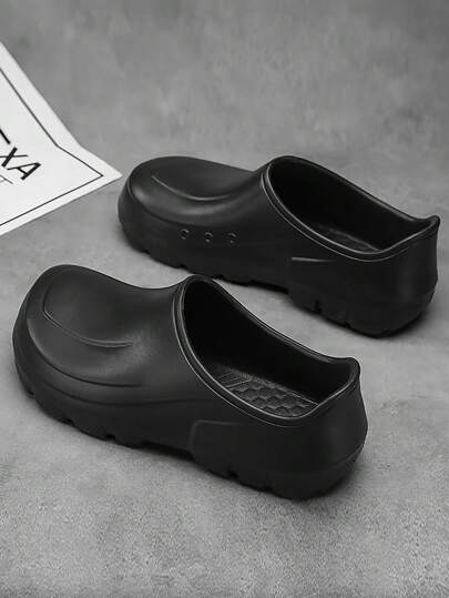 Men's Chef Shoes, Waterproof Oil-Resistant Slip-On Slouchy Shoes, EVA Lightweight Soft Sole Elastic Sport Shoes Outdoor Black Work Safety Casual Sneakers - Black - View 1