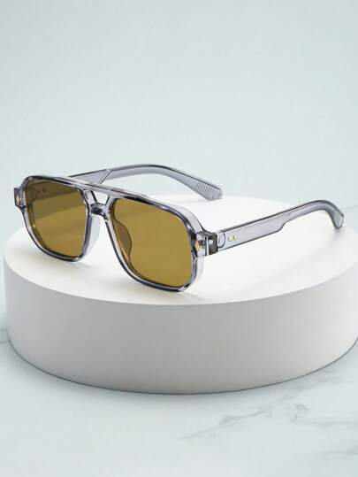 1pc Men Vintage Square Frame Stylish High-End Fashionable Fashion Glasses (Suitable For Driving, Travel, Casual, Vacation, Outdoor Sports, Daily Use) For Summer Beach Vacation,Outdoor,Travel - Gray Frame Yellow and Green Film - View 1