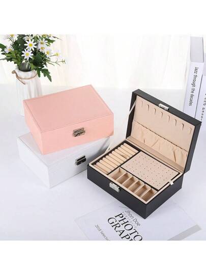 A Three-Layer Jewelry Box Made Of Velvet And Faux Leather, Compact And Portable For Storing Earrings, Rings, Necklaces, And Other Jewelry-Making Supplies. - B-white - View 1