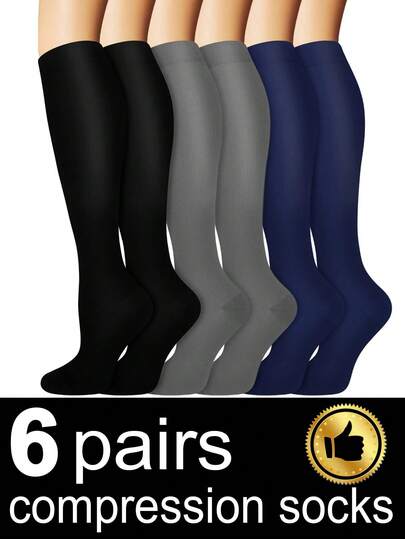 2/6/8/10 Pairs Unisex Compression Socks Women, Men Knee High Sports Compression Socks Low Pressure Socks Support For Running, Cycling, Hiking, Travel Socks, Fall - Multicolor - View 1