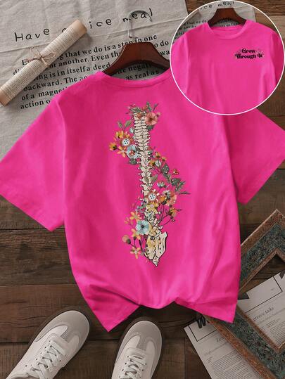 Women's Casual Short Sleeve Round Neck T-Shirt - Hot Pink - View 1