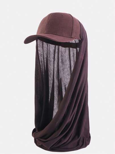 1pc Women's Summer Brimmed Headscarf Hat, Baseball Cap With Scarf, Sun Visor Wrap Around Scarf Hat, Suitable For Daily Use - Solid Color - View 1