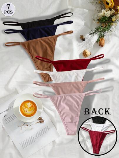7Pcs Set Sexy Thongs Panties 7pcs Pack Soft G String Pack T Back Thongs Breathable Panties Sexy Briefs Personalized Thong Sexy Lingerie - Multicolor - View 1