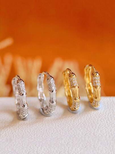 2pcs S925 Sterling Silver Original Elegant Zirconia Bamboo Node Earrings, Versatile Accessories For Women, Suitable For Daily Wear, Festival & Party Gift - Bamboo Zirconia Earrings - View 1