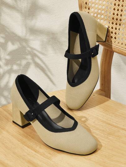 CUCCOO BASICS Women's Fashion Versatile Comfortable Mary Jane Pearl Contrast Color High Heel Pumps - Apricot - View 1