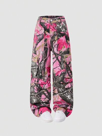 Tween Girls' Y2K Style Casual Versatile Camouflage Denim Wide Leg Pants, Suitable For Daily Wear - Hot Pink - View 1