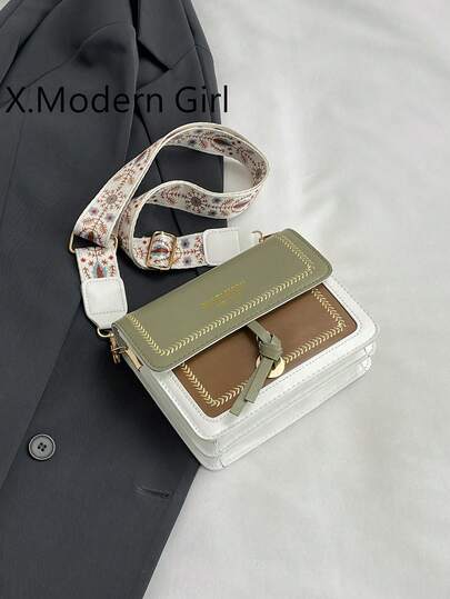 Fashionable Bag For Women, Versatile New Crossbody Bag, Casual, Contrasting Color, Small Square Bag, Wide Shoulder Strap, For Party Date School Outdoor Gift - Green - View 1