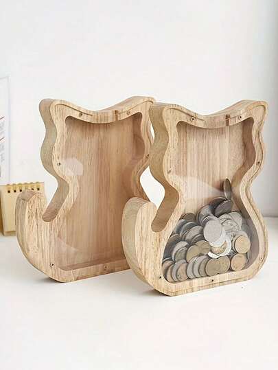 Charming Wooden Cat-Shaped Penny Bank With Clear Glass Lid - Unique Animal Design Coin Storage For Home Decor, Perfect Gift For Birthdays, Christmas, Thanksgiving, Easter & More, Desk & Drawer Organizer For Home Storage - Multicolor - View 1