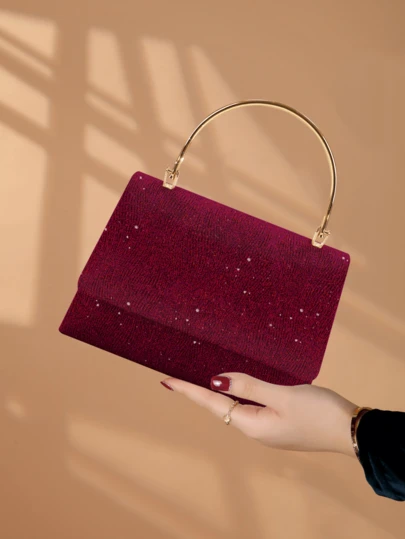 New Ladies Handbag Sparkling & Fashionable, Women Wallet With Hidden Card Slots, Luxury & Charming Party Evening Bag, Detachable Metal Chain Shoulder Crossbody Bag Suitable For Ball, Party, Wedding, Great Gift For Women - Burgundy - View 1