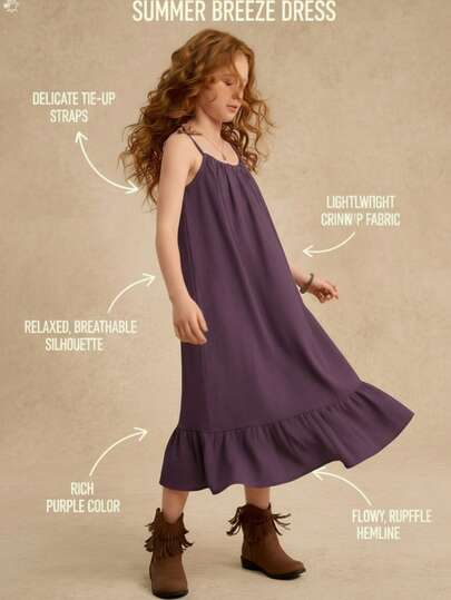SHEIN Tween Girls Spring & Summer Wildeya New Style Minimalist Bow Decor Spaghetti Strap Maxi Dress, Suitable For Outdoor Activities, Daily Occasions, Festivals, Parties And Social Events Casual Dresses For Girls Beach Dresses For Girls Summer Dresses For Young Girls Kids Dresses For Girls That Cover Your Sholders Girls Summer Clothes Dress - Dusty Purple - View 1