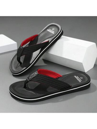 Plus Size Men's Solid Color Casual, Soft And Comfortable Slip-On Beach/Outdoor/Bathroom/Street Flip Flop Sandals, Spring/Summer - Black - View 1