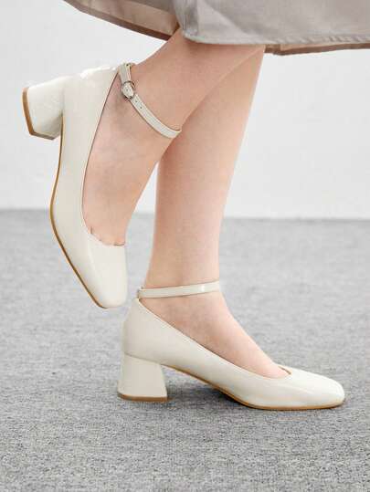 CUCCOO BIZCHIC Simple Mary Jane Chunky Heel Pumps For Women, Halloween - Beige - View 1
