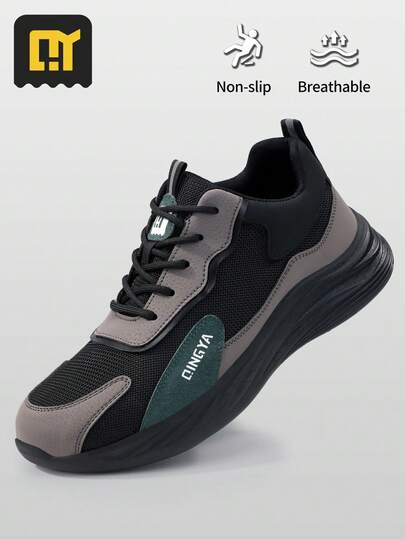 Anti-Slip Chef Shoes, Men's Low-Top Safety Shoes, Grey Color Breathable Soft Non-Slip Lightweight Work Shoes - Grey - View 1
