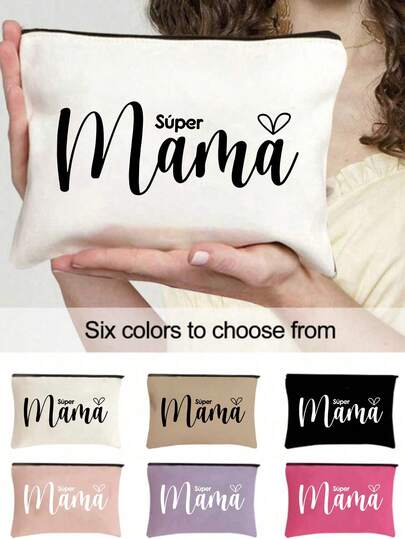 Printed With Letters Mama Multi Functional Canvas Bag, Lightweight And Odorless Polyester Travel Wash Bag,Portable Makeup Bag, Perfect Travel Organizer For Cosmetics And Stationery, Fashionable Multifunctional Makeup Bag, Mother Makeup Bag, Travel Essentials, Dormitory Supplies, Bathroom Storage, Jewelry Storage, Lip Oil And Cosmetics Storage Bag,Holiday Essentials,Mother's Day Gift - Multicolor - View 1