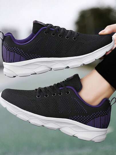 Women's Fashionable Outdoor Casual Shoes, Breathable Lightweight Lace-Up Comfortable Black Sneakers, MD Anti-Slip Soft Bottom Lightweight Running Shoes, Walking Shoes, Labor Day/Valentine's Day/Holiday Gift - Purple - View 1