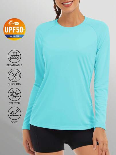 KEFITEVD UPF50+ Women's UV Shirts Rash Guard Long Sleeve Outdoor Skin Protection T-Shirts Hiking Fishing Workout Rashguard - Light Lake Blue - View 1