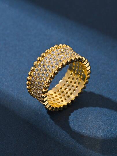 One Fashionable Popular Bestselling Shiny Elegant Full Rhinestone Bling Wide Pave Cubic Zirconia Dual-Tone Women's Closed Ring Earrings Set, Suitable For Wedding, Love Expression, Anniversary, Evening Party, Holiday Gathering, Gifts For Girlfriend, Wife, Birthday, Work, Commute, High-Quality Jewelry Accessories - JZ105 - View 6