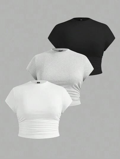 SHEIN EZwear 3pcs/Set Plus Size Women Solid Color Casual T-Shirts, Fashionable For Summer Tops For Woman Tops Women Tops Suitable For Going Out - Multicolor - View 11