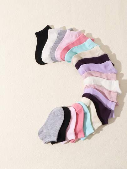 20 Pairs Kids' Solid Candy Color Short Socks, Comfortable Casual Daily Wear - Multicolor - View 1