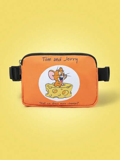 TOM & JERRY X SHEIN Women's Fashion Cartoon Mouse & Cheese Print Adjustable Strap Square Fanny Pack, Suitable For Sports, Running, Cycling, Hiking - Multicolor - View 1