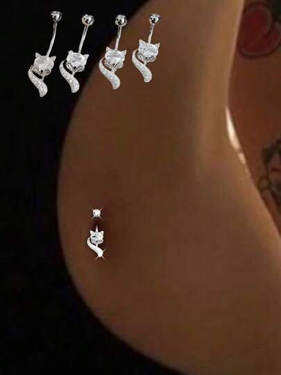 1PC S925 Sterling Silver Fox Navel Ring Puncture Luxury Jewelry For Women, Fox Navel Nail For Girls' Daily Wear For Girls,Girl's Daily Outfit,Wear The Best Gift For Girlfriend, Mother, Sisters - Navel Nails - View 9