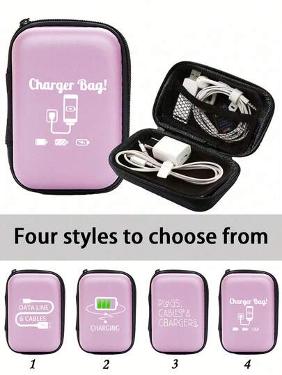 Portable Mini Storage Bag, Mobile Phone Charger Data Cable Organizer Bag, With Charging Cable Pattern - Pink - View 1