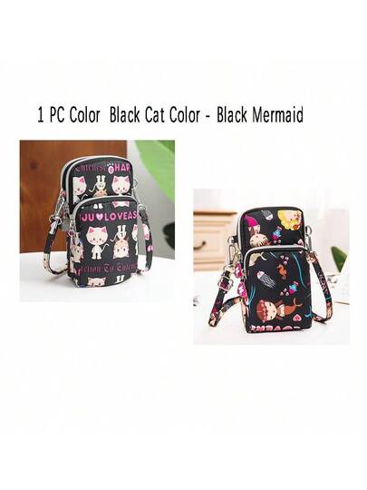 1 PC New Nylon Cell Phone Bag Cartoon Black Bottom Coin Bag Triple Crossbody Bag Hanging Neck Sports Running Arm Bag For Women Wallet Purse Wallet Wallet - Multicolor - View 1