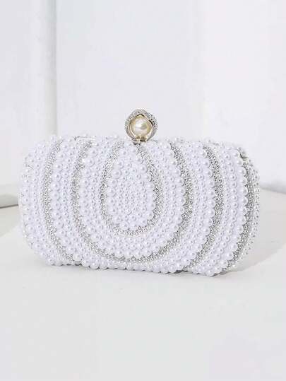 Pearl Embroidered Crystal Decorated Women's Evening Bag, Elegant Party Clutch Handbag With Shoulder Strap - White - View 1
