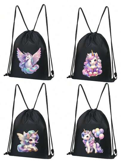 1pc New Colorful Unicorn Drawstring Japanese Backpack, Casual, Simple And Generous, With Drawstring Cuffs And Adjustable Shoulder Straps, Suitable For School And Hiking, Travel, Convenient For Storing Daily Necessities, Wide Range Of Uses, Fashion Darling, Suitable For All Styles And Occasions, Strong Style Adaptability. - Colorful Unicorn Backpack - View 4