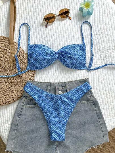 Swim Mod Springbreak Women Printed Spaghetti Strap Twisted High Cut Sexy Bikini Set, Beachwear Summer Outfits - Multicolor - View 3
