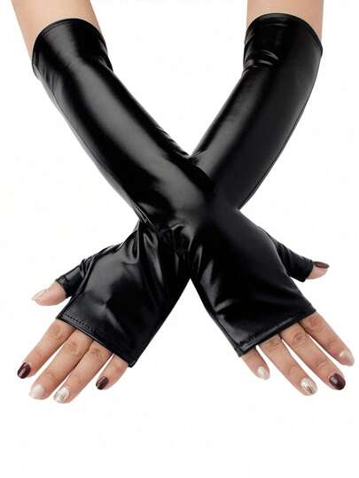 1pc Long Stretchy Sleeve Gloves For Ladies, Party & Dance Events - Black - View 1