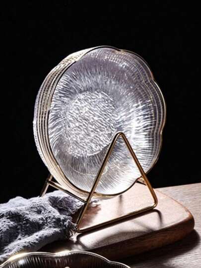 [4pcs/Set] Nordic Style Floral Shape Snack Plate For Home Use, Dining Table Christmas Gift - Transparent White - View 1