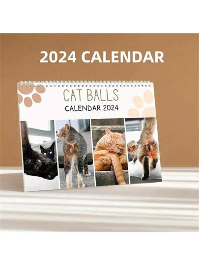 [Four Cats Butt Calendar] 1 Set 2024 Funny Cat Butt/Balls Calendar, A Must-Have Gift For Cat Lovers, Suitable For Home Or Office Decoration And As A Fun Gift For Friends - Multicolor - View 1