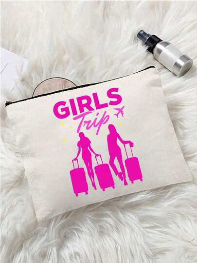 "Girls Trip" Print Cosmetic Bag Set,Reusable Cosmetic Pouch With, Lightweight Handbag And Portable Storage Bag, Multifunctional Portable Handbag,Cosmetic & Toiletry Organizer Bag, Zippered Cosmetic Bag, Lightweight Coin Purse, Toiletry Bag, Storage Bag, Travel Accessory,For Travel, Toiletries, Suitable For Travelers, Group Trip Goers, Women, Students, Perfect For Vacation Getaways, Girls Trips - Multicolor - View 1